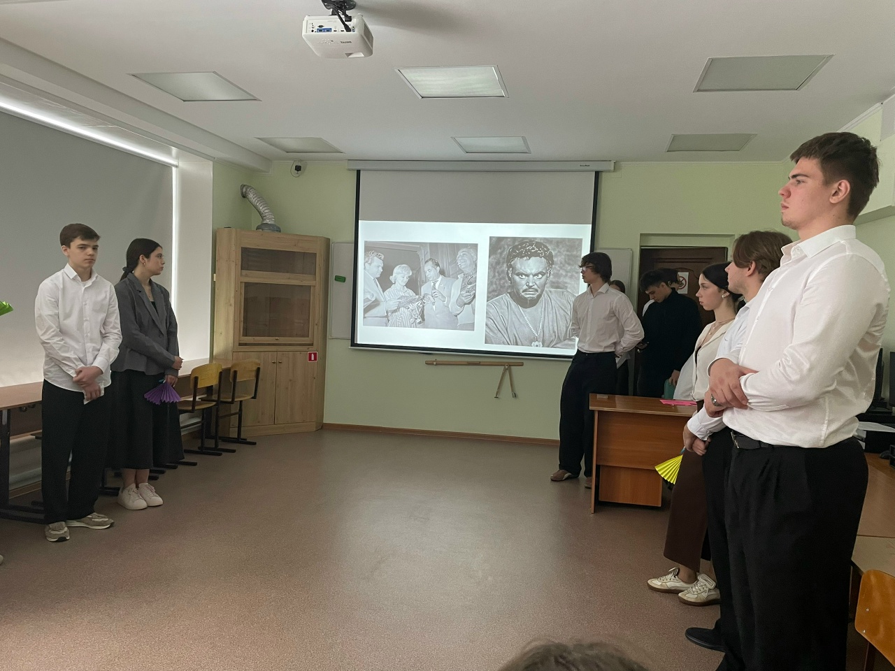 Именно об этом фильме и о режиссере КОНСТАНТИНЕ БРОМБЕРГЕ рассказали ребята из 6 класса. Прекрасно спели «Крылатые качели» и побывали в роли героев фильма. Одиннадцатый класс ,конечно же,рассказал о знаменитом СЕРГЕЕ БОНДАРЧУКЕ и его творчестве. Ребята создали фильм про его жизнь и даже станцевали вальс под музыку из фильма «Война и мир».