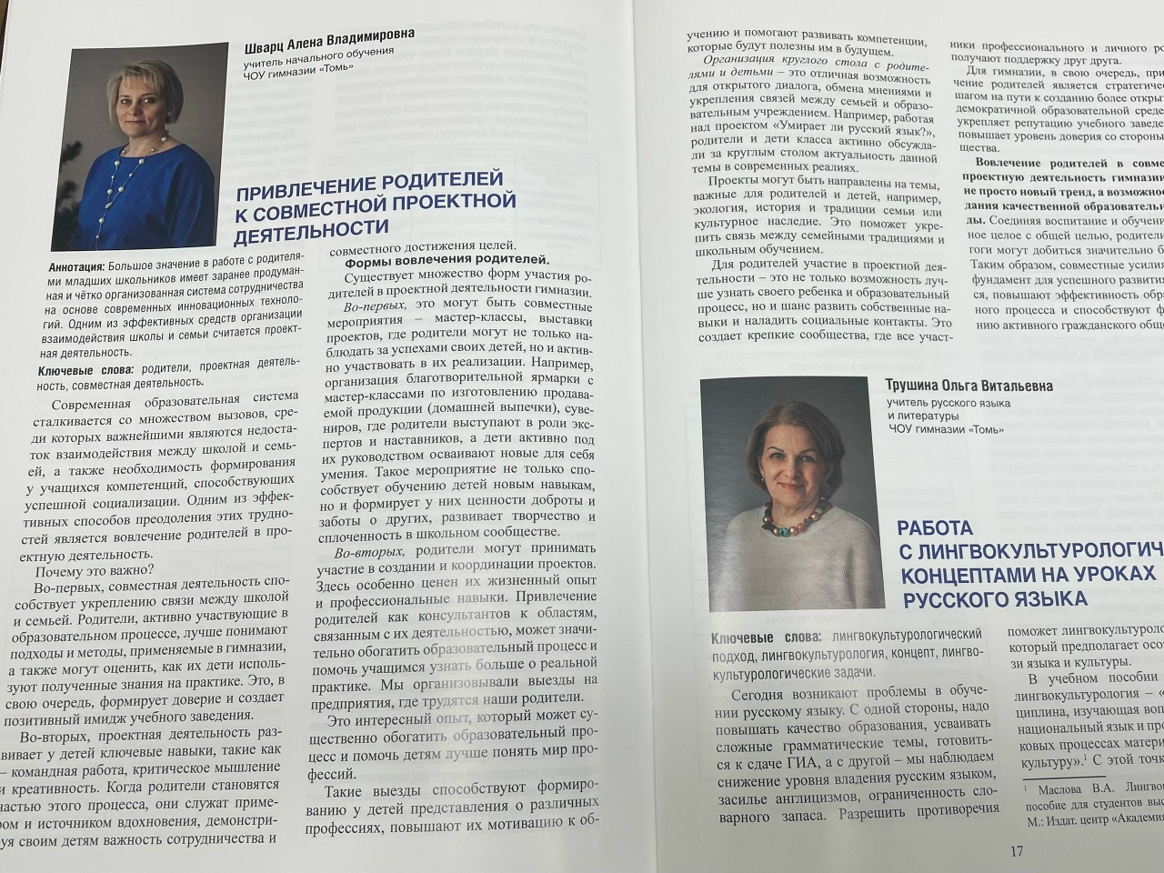 Учителя гимназии - участники инновационной площадки "Возвращение к истокам" напечатали итоговый сборник методических материалов , освещающих деятельность этой площадки. Также был выпущен еще один сборник. В нем собраны все Положения конкурсов и конференций, созданных и успешно реализованных в течение семи лет существования региональной площадки. Их немало: семь. Получается каждый год педагоги запускали по одному конкурсу в год. Сейчас гимназия готовится к очередной конференции " В начале было Слово", которая проводится в рамках Дней славянской письменности и культуры.